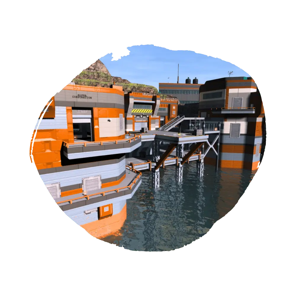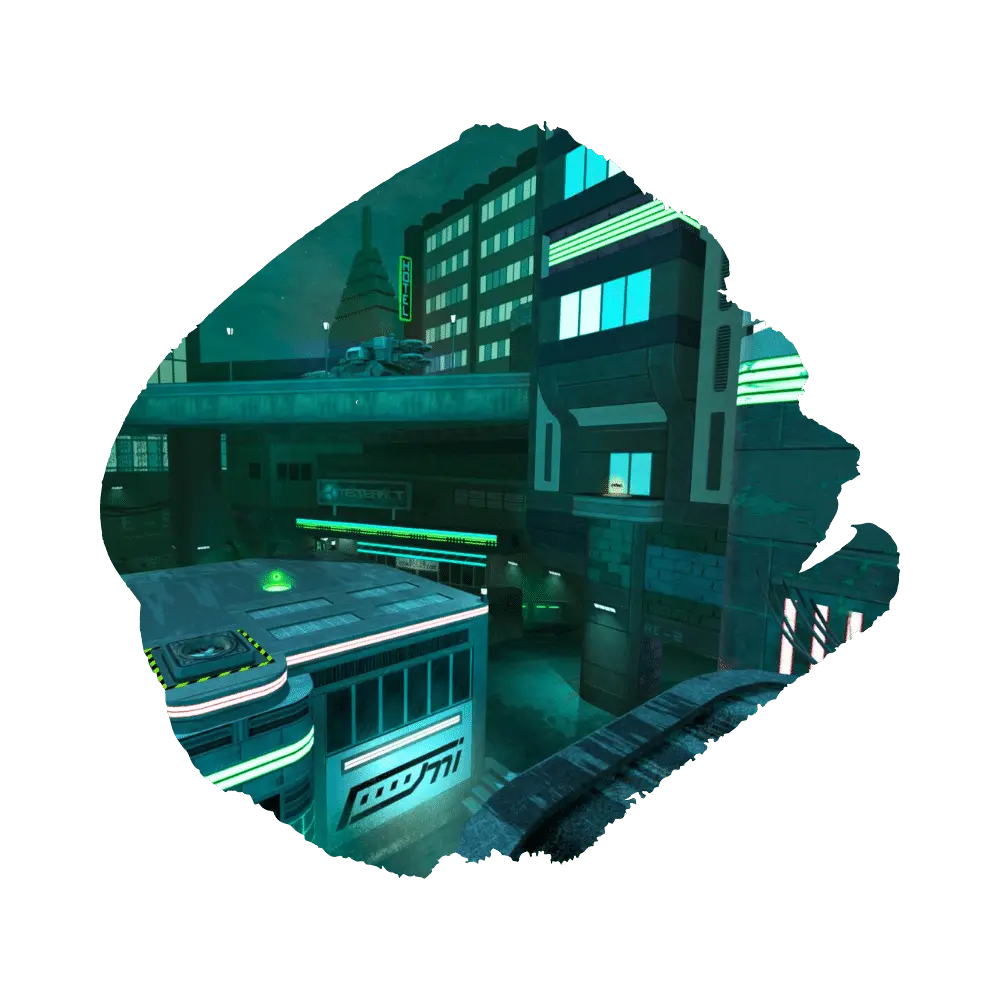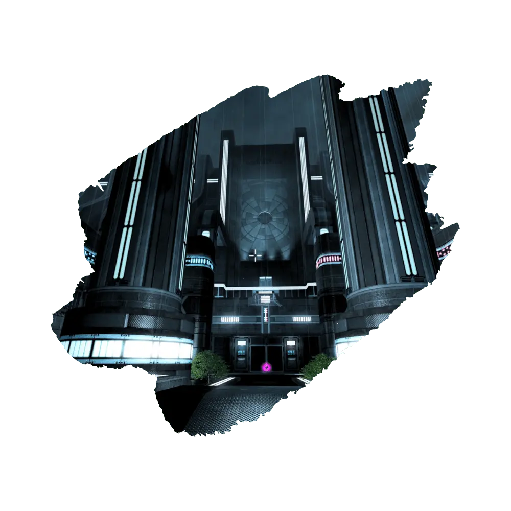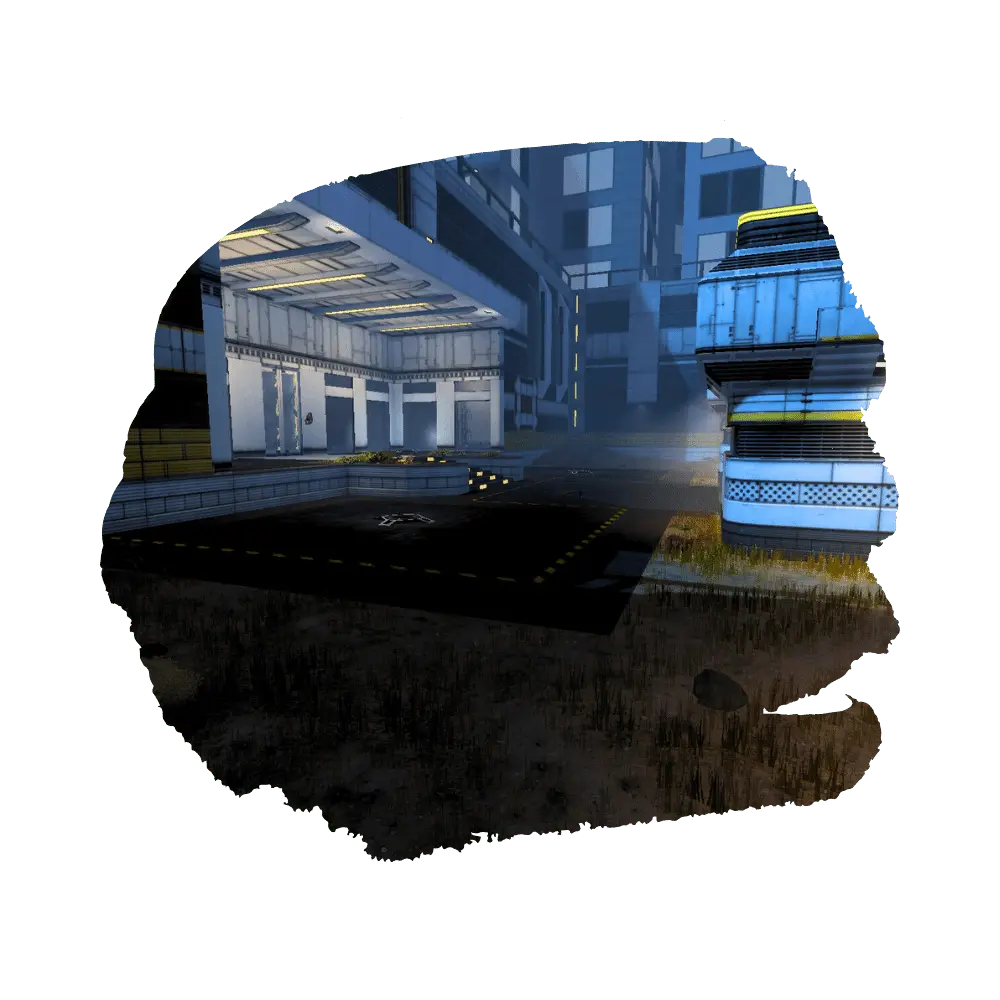Galactic skyscrapers. Simple, but relatively large, layout capable of duel, survivor, or medium FFAs. Bridges cross the exposed center of the map, making long range combat viable.